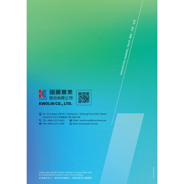 國麗實業為粉末塗料的專業製造廠,在台灣20多年來已深受業界肯定,產品皆符合美國玩具八大重金屬ASTM F963-17及歐盟RoHS相關限值含量規定,請安心使用。此色卡中產品皆為庫存色,基本包裝為25公斤,少數產品為20公斤,若標準色卡中無符合需求之顏色,亦可依您的色卡或國際色卡(Pantone、RAL、Japan Paint等)進行配色開發,歡迎聯絡我們對色及打樣。