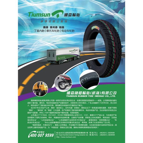 騰森橡膠輪胎有限公司現代化摩托車外胎與丁基內胎生產企業。公司創立於2006年.年可生產丁基內胎1200萬條。