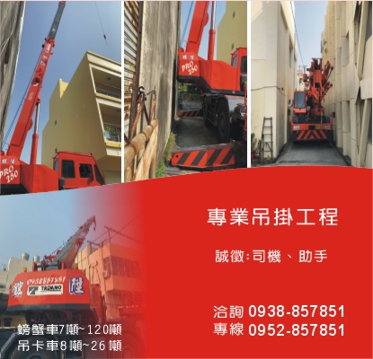 高雄吊車工程、高雄起重工程、吊車工程、起重工程、起重吊掛、吊車吊掛、各式吊車、固定籃、吊車出租、吊卡出租、螃蟹車出租、吊卡8噸、吊卡15噸、吊卡20噸、吊卡23噸、吊卡26噸、螃蟹車7噸、螃蟹車8噸、螃蟹車10噸、螃蟹車25噸、螃蟹車45噸、螃蟹車60噸、螃蟹車80噸、螃蟹車120噸
