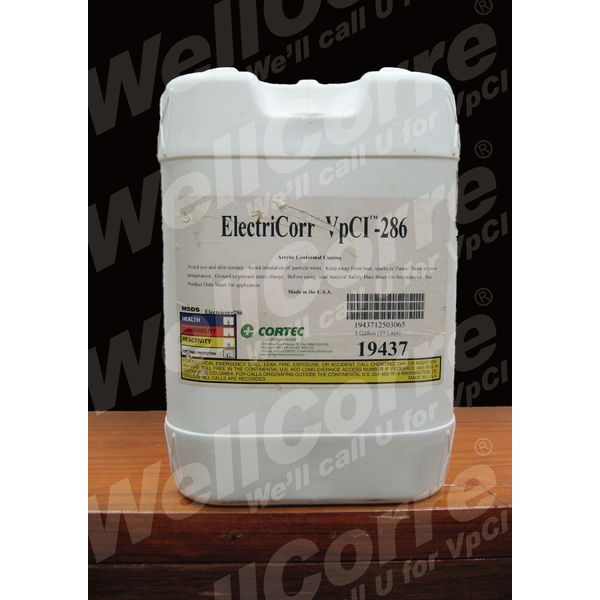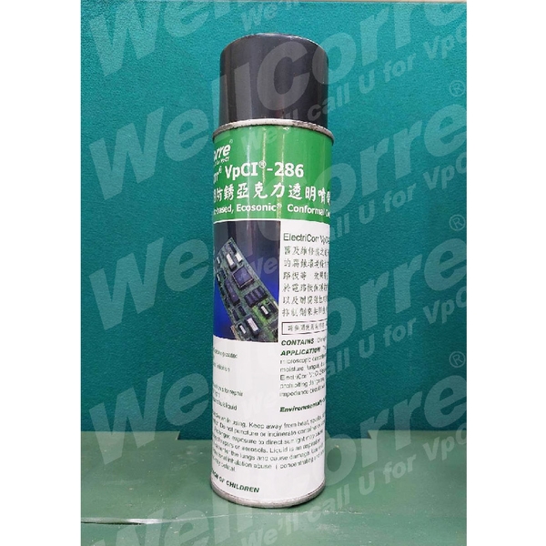 ElectriCorrTM VpCI-286係一種電子線路版專用之亞克力性質防潮銹蝕抑制透明噴劑,在PCB板上留下一層不具導電性質的透明防水薄膜層。含有專利的氣相銹蝕抑制劑配方,操作中對需要保護的電子金屬組件是以氣相滲透分子密佈進行之方式對金屬所有表面包括孔縫處以成形之單分子保護層達到完整的銹蝕抑制保護效果。