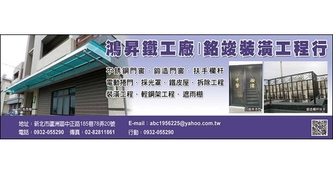 鴻昇鐵工廠/銘竣裝潢工程行、是一家擁有超過三十年不銹鋼工程、鐵鋁門窗豐富經驗的門窗行,除了門面,我們還有專業的室內裝潢團隊,為您打造一個舒適的家,我們相信專業的技術、實在的價格、優良的品質、良好的售後服務,以及誠懇的態度去完成每一位客戶的案件,才是長久經營之道。