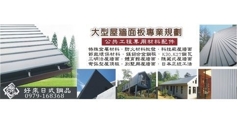 日式鋼瓦、綠建築、日本鋼瓦、一文字鋼瓦、立平葺鋼瓦、T型鋼瓦、綠青銅瓦、不銹鋼瓦、銅根屋、日式琉璃鋼瓦、彩色鋼瓦、寺廟銅瓦、農舍瓦、民宿瓦、日式建築屋頂、歐式建築鋼瓦、小木屋屋頂、休閒渡假屋、別墅整體規劃設計、別墅鋼構、活動中心、體育館、禮堂、科技廠房、賣場、車庫、新建、翻修、拉皮、節能抗塵牆面板、屋頂板、防火隔熱屋牆面板 (附防火試驗報告書)、日式浪板、造型浪板、鋼瓦、特殊鋼捲、節能抗污鋼捲、PVDF鋼捲、SMP鋼捲、PE鋼捲、木紋鋼捲、鍍鋁鋅鋼捲、木紋鋼板格柵、日本烤漆鋼捲、德國進口鋁合金板、室內外壁癌專用可DIY牆板、鍍鋁鋅烤漆鋼捲、烤漆鋼板、鈦鋅板、鋁鋅板、岩棉、玻璃棉、日本水漕、天溝、日式和風落水鍊、大型屋牆面板專業規劃、公共工程專用鋼瓦、鐵板鋼瓦、防火材料、鎂鋁合金鋼板、K30鋼瓦、K27鋼瓦、三明治牆面板、太陽能屋頂板、隱藏式屋頂板、彎弧形屋頂瓦、別墅用屋頂瓦、科技廠牆面板、體育館屋頂板、批發.歡迎 相關同業.建築師.設計師.設計單位.工程單位.自立造屋.使用本公司產品.全國服務.提供專業人員參與規劃設計.單價分析.鋼捲規範.日式工法施工規範.鋼瓦浪板樣式.H鋼結構.C型鋼.Z型鋼...服務