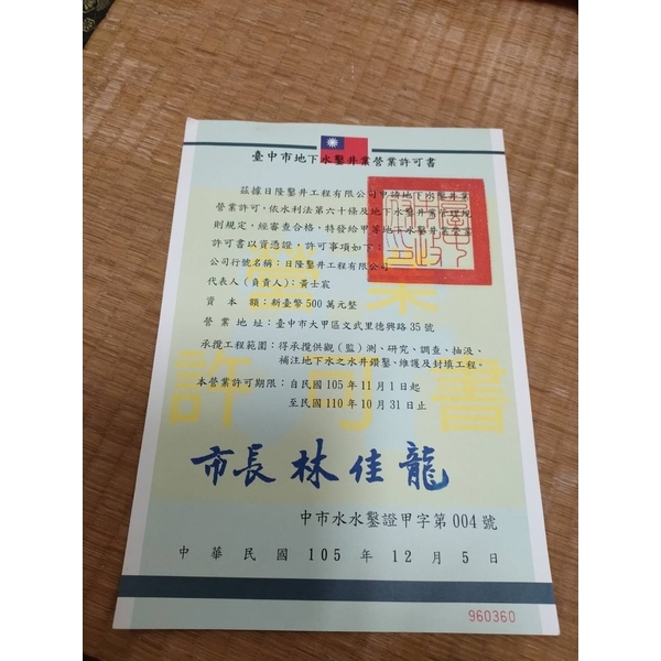 『日隆鑿井工程有限公司』位於台中大甲區,專營提供各式井、地下水井鑽井、機械鑿井、鑽井、家庭飲水、工業用水、洗井維修、深水馬達、申請水權等鑿井工程承包及地質探勘等鑿井工程等相關服務。