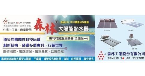 森林太陽能熱水器、不銹鋼、銅管板式集熱器、專利可通洗集熱器、強制、自然循環、真空管式熱水器、不銹鋼板式集熱器、強制式熱水器、熱泵熱水系統、辛巴達焊將熱水爐、太陽能熱水器、家庭用熱水器、商業用熱水器、集熱器、保溫槽、電能熱水器、熱泵熱水器等通過ISO9001國際品保認證、熱泵熱水器、家用熱水器、商用熱水器、儲水保溫桶、太陽能
