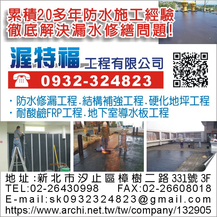 防水修漏工程、結構補強工程、硬化地坪工程、耐酸鹼FRP工程、地下室導水板工程、地下室連續壁導水板工程、EPOXY硬化地坪、地下室防水、連續壁防水、結構體防水、二次施工縫防水、窗框壁癌之止漏工程、EPOXY高低壓灌注、高強度水泥修補、結構補強工程、碳纖網結構補強、結構蜂巢灌注補強、樑柱龜裂補強、硬化地坪工程、金鋼砂整體粉光、地坪防水、防水毯、地下室止漏工程、連續壁壁體防水、連續壁止漏工程、地下室防水工程、壁癌處理工程、FRP耐酸鹼防水、環氧樹脂地坪工程、高壓灌注止漏工程、內壁止漏工程、天花板止漏工程、頂樓防水工程、樓梯厝內外壁補強、各式防水工程、汐止防水抓漏、汐止結構補強、汐止硬化地坪、汐止耐酸鹼FRP、汐止地下室導水板、新北防水修漏、新北結構補強、新北硬化地坪、新北耐酸鹼FRP、新北地下室漏水、新北地下室防水、新北地下室導水板、新北連續壁防水