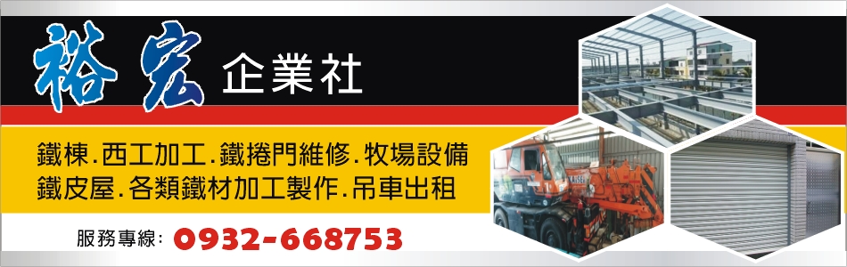 服務項目:鐵棟、西工加工、鐵皮屋、鐵厝、牧場設備、鐵捲門維修、各類鐵材加工製作、吊車出租、天車、不銹鋼採光罩、不銹鋼門、廠房搭建、鐵皮屋加蓋、台中鐵棟、台中西工加工、台中鐵捲門維修、台中華特修理安裝、台中鐵棟新建、台中吊車出租、台中門窗安裝、台中鐵皮屋、台中鐵捲門維修、台中鐵材加工、台中鐵厝、台中天車、台中採光罩...等。