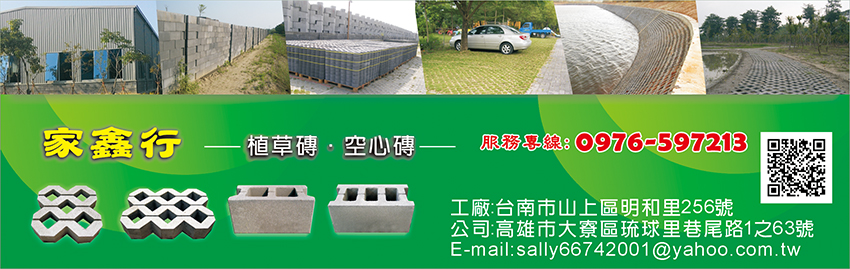 ※服務項目:植草磚、空心磚、平板磚、界石、圍牆磚、連鎖磚、人行道紅路磚、高壓隔熱磚、隔熱磚、磨石磚、水泥磚、綠建材、植草磚價格、空心磚價格、水泥空心磚、造景、台南空心磚、台南植草磚、停車場植草磚、造景磚、景觀工程、園藝、庭園造景、園藝造景、停車場、綠建築、台南水泥磚、台南磨石磚、台南隔熱磚、台南高壓隔熱磚、台南人行道紅路磚、台南連鎖磚、台南圍牆磚、台南平板磚、家鑫水泥磚