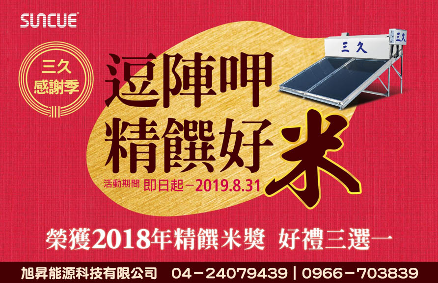 逗陣呷精饡好米!安裝太陽能精饡好米三選一!