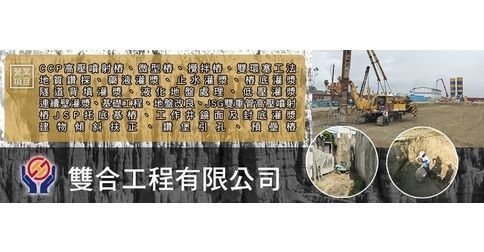 CCP高壓噴射樁、微型樁、攪拌樁、雙環塞工法、地質改良、高低壓灌漿、止水灌漿、樁底灌漿、隧道背填灌漿、液化地盤處理、低壓灌漿、連續壁灌漿、基礎工程、地盤改良、JSG雙重管高壓噴射樁、JSP托底基樁、工作井鏡面及封底灌漿、建物傾斜扶正、鑽堡引孔、預壘樁