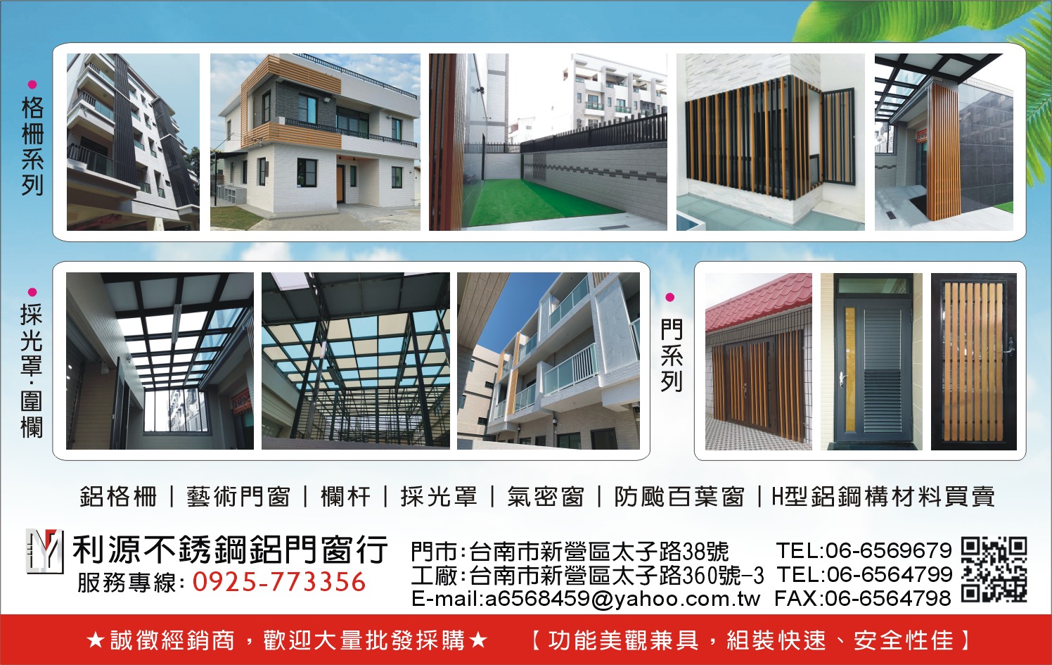 本公司從事鋁門窗這個行業已經有將近30年,經驗相當的豐富,一直以來我們都不斷的研發與創新產品,來達到消費者的喜好,採光罩、防盜門、防盜窗、百葉窗、氣密窗、花台、花架、隔間、折紗、淋浴拉門、景觀欄杆、景觀護欄、玻璃屋、不鏽鋼昇降晾衣架、玻璃屋、衣架。