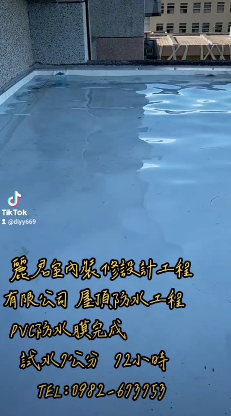 屋頂防水工程 PVC防水膜完成 試水7公分 72小時