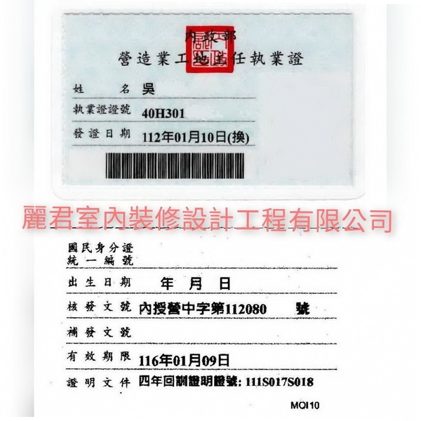麗君室內裝修設計工程有限公司 - 營造業工地主任執業證產品