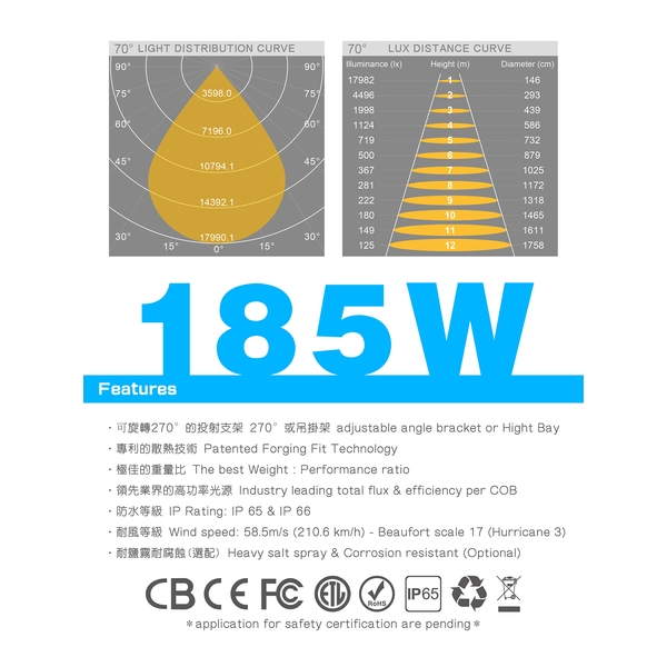 藉由集團資源從COB光源、金屬散熱電路板到散熱模組的研發一條龍服務,為客戶客製化燈具,其專利的COB與散熱元件為業界領先技術,可廣泛應用在各種照明與散熱需求,並備有LED相關的嚴謹測試儀器設備,是生產LED高功率燈具最值得信賴的品牌。