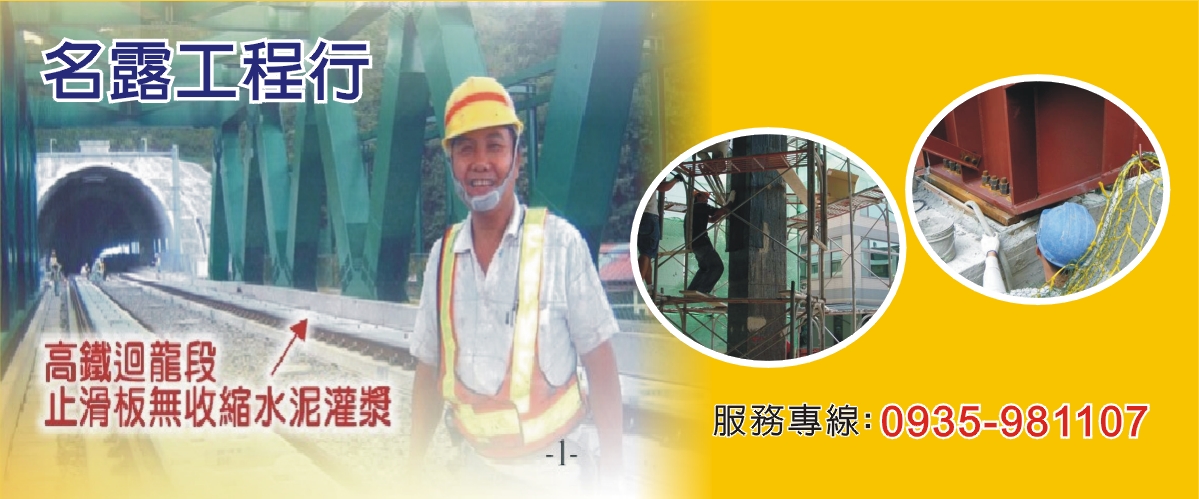 止滑板無收縮水泥灌漿、無收縮水泥灌漿、海砂屋修復補強、EPOXY補強、碳纖維包覆、水玻璃灌注止水工法、滲透結晶止水工法、結構補強、抓漏、無收縮水泥材料、鋼板包覆灌注、RC結構裂縫灌注、海砂屋頂板補強、鋼骨底座水泥灌漿、橋梁支撐墊水泥灌漿、逆打二次接頭、鋼板補強、制震阻尼器、鋼板結構補強、地質改良水泥灌漿、蜂窩補強、機械底座水泥灌漿、水閘門水泥灌漿、鋼骨柱內灌漿補強、新北無收縮水泥灌漿、新北EPOXY補強、新北碳纖維包覆、台北無收縮水泥灌漿、台北EPOXY補強、台北碳纖維包覆、基隆無收縮水泥灌漿、基隆EPOXY補強、基隆碳纖維包覆