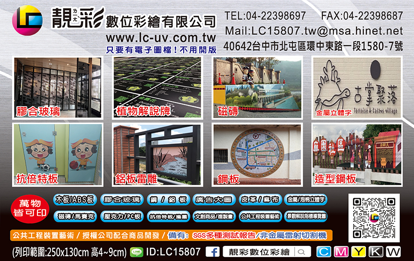 無版印刷、UV數位直印彩繪、數位直印、文創商品印刷、個性客製化、手機殼彩繪印刷、皮革印刷、磁磚直印彩繪、玻璃直印彩繪、壓克力印刷、鋁鋼板直印彩繪、建材印刷、導覽圖、指標、木板印刷、公共藝術裝置彩繪、銘版名牌印刷、網版印刷、門牌、解說牌、複製畫、大圖輸出、招牌製作、SGS、耐候、蝕刻、逃生圖、仿木紋石紋印刷、塑木印刷、拼圖印刷、積木印刷、帆布輸出、客製化代工、數位百墨印刷、硅璪土製品印刷、紡織品印刷、塑膠地板印刷、機械面板印刷、磁鐵印刷、ABS印刷、PET印刷、各種材質印刷、台中大圖輸出、台中招牌製作、台中網版印刷、台中無版印刷、台中木板印刷