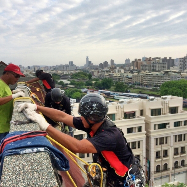 特殊繩索外牆防水處理,吸引各大廠商與我們配合,不論是各式高樓、特殊地形都能處理。
