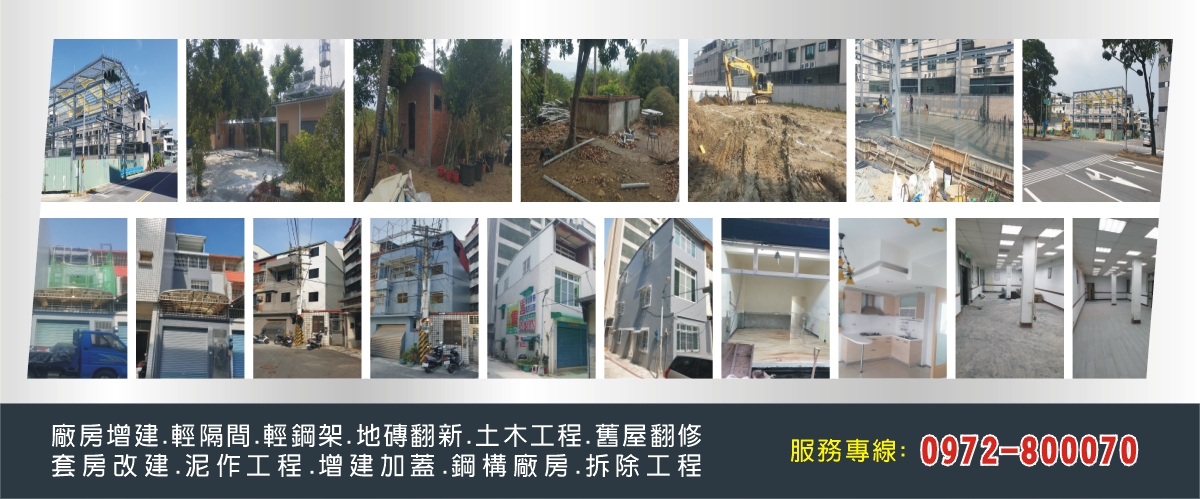 ※服務項目:防水維修工程、抓漏維修工程、廠房新建、輕隔間、輕鋼架、地磚翻新、土木工程、舊屋翻修、套房改建、泥作工程、增建加蓋鋼構廠房、拆除清運、整地、水電工程、瀝青鋪設壁癌處理、油漆工程、鐵皮屋防水、隔間、打牆、抿石子、混凝土防水、矽酸質防水工程、EPOXY施作、PU防水工程、防水抓漏、隔熱施工、房屋拆除、鐵皮屋拆除、舊屋翻新、房屋修繕、實木地板、小木屋興建、兒童安全鐵窗、兒童防墜鐵窗、隱形鐵窗、氣密鋁窗、採光罩家具訂做、鋼構工程、桌椅訂做、結構補強、牆壁天花板裝潢、切割、高雄市鐵皮屋防水隔熱、高雄市土木工程、高雄市抿石子、高雄市混凝土防水、高雄市矽酸質防水工程、高雄市PU防水、高雄市EPOXY施作、高雄市防水抓漏、高雄市隔熱施工、高雄市壁癌處理、高雄市房屋拆除、高雄市拆除清運、高雄市鐵皮屋拆除、高雄市地磚翻新、高雄市油漆工程、高雄市套房改建、高雄市舊屋翻修、高雄市房屋修繕、高雄市氣密鋁窗、高雄市採光罩、鳥松區鐵皮屋防水隔熱、鳥松區混凝土防水、鳥松區矽酸質防水、鳥松區PU防水、鳥松區EPOXY施作、鳥松區防水抓漏、鳥松區隔熱施工、鳥松區壁癌處理、鳥松區房屋拆除、鳥松區拆除清運、鳥松區鐵皮屋拆除、鳥松區地磚翻新、鳥松區油漆、鳥松區套房改建、鳥松區舊屋翻修、鳥松區房屋修繕