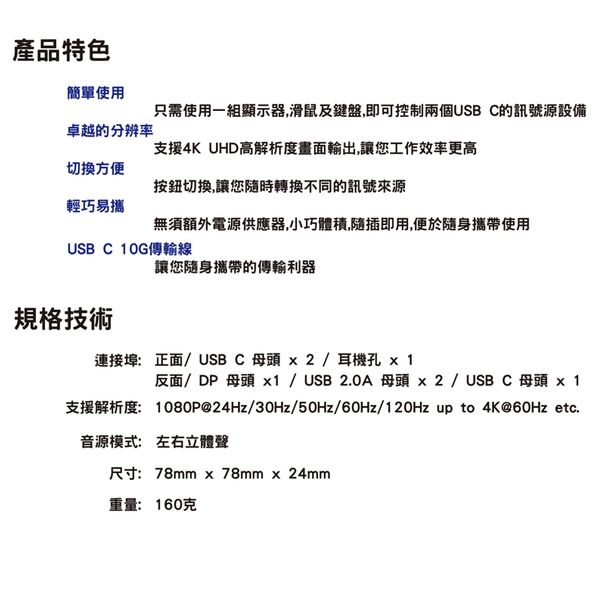 日煜國際科技有限公司 - 2 USB TYPE-C 轉DP 切換器產品
