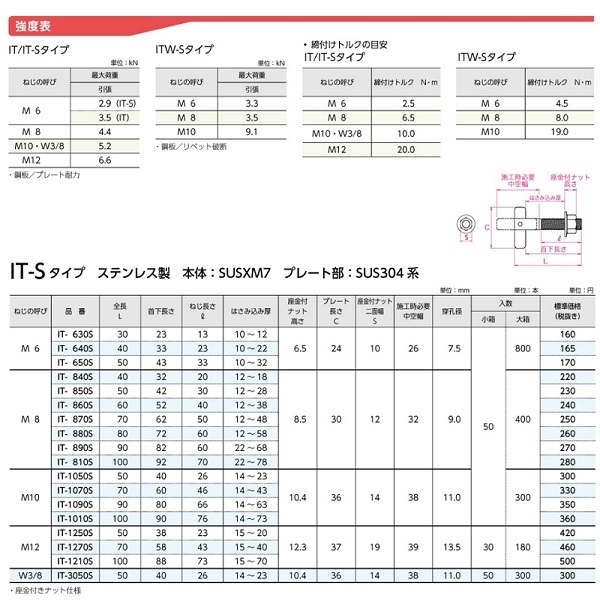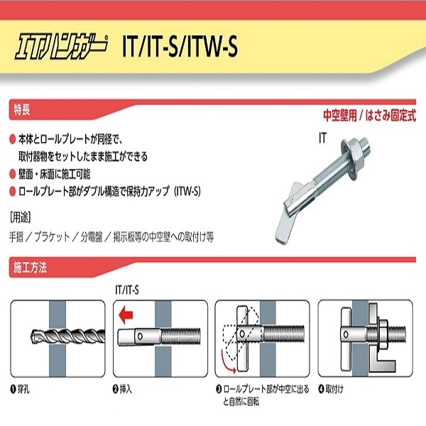 中空壁用錨栓 ITハンガー IT-1070S ITハンガー IT-S-TYPE