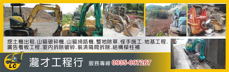 挖土機怪手小乖乖出租、台北挖土機出租、怪手、小型挖土機怪手、1米迷你挖土機怪手小乖乖(95公分寬)鏟土機、山貓破碎機出租施工、山貓掃路機出租、鏟裝機夾子拆除、怪手拆除、園藝種樹移樹整地除草、水電信管溝、排水管、污水管化糞池、埋管、廣告看板基礎、排水溝工程、結構樑柱補強、電梯井工程昇降機、地基基礎工程、鐵皮屋基礎基座工程、廣告基礎基座工程、室內拆除破碎、裝潢隔間拆除、百貨公司拆除
