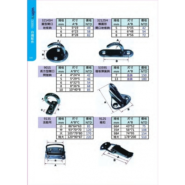 白鐵地板鉤、問號鉤、活動耳、箱扣產品介紹 - 盈新五金開發有限公司