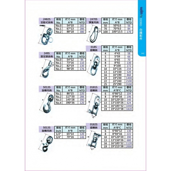 白鐵旋轉鉤、迴轉鉤產品介紹 - 盈新五金開發有限公司
