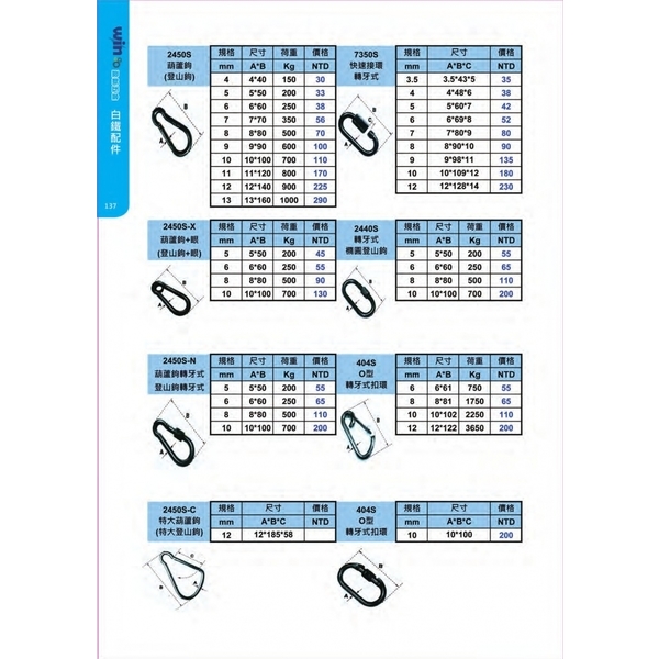 白鐵葫蘆鉤、橢圓鉤、登山鉤產品介紹 - 盈新五金開發有限公司