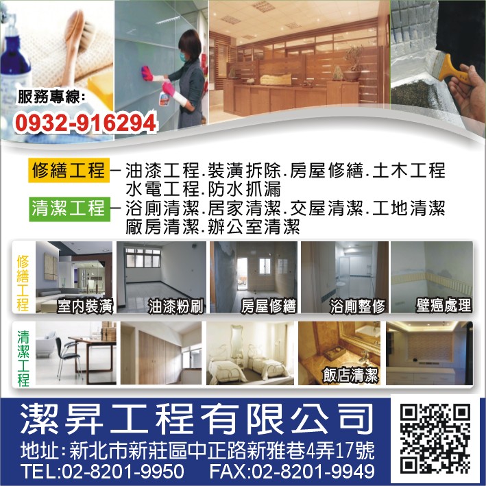 油漆、拆除、清潔、房屋修繕、家事服務、居家清潔、沙發清洗、交屋清潔、地毯清潔、木質地板拋光、外牆清洗、辦公室清潔、拋光打蠟、辦公家具清潔、地板打蠟、駐點包月清潔、垃圾清運、建築物拆除、廢棄物清運、滅蚊、白蟻防治、除蟲、土木工程、防水抓漏、新北市清潔公司、新北市家事服務、新北市居家清潔、新北市沙發清洗、新北市交屋清潔、新北市地毯清潔、新北市木質地板拋光、新北市外牆清洗、新北市辦公室清潔、新北防水抓漏、新北土木工程、新北防水抓漏、新北房屋修繕、新北滅蚊、新北白蟻防治、新北洗水塔、新北消毒、新北石材養護、新北石材美容、新北外牆清洗、新北辦公室清潔、新北油漆工程