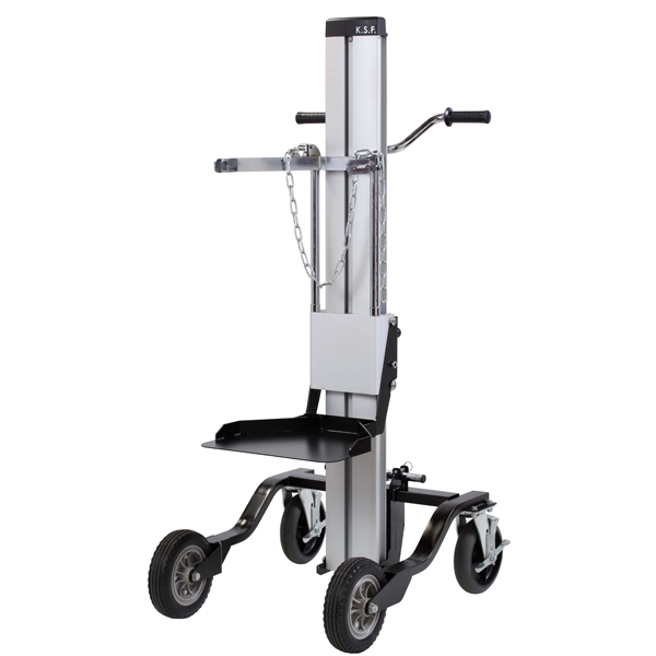 時尚的設計。可折疊式,輕便型推車用於全系列氣瓶運輸。平台與地面貼齊,載物便利。專利設計絞盤,可在任何高度鎖固。內置式鋼索,可防止手指於操作時受傷。具防穿刺的輕型車輪,即使在崎嶇的地形上,仍保持良好的牽引力和平穩性