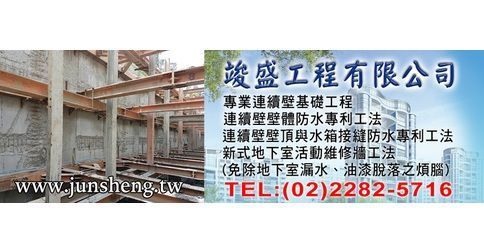 連續壁地下工程、連續壁壁頂與水箱接縫防水專利工法、新式地下室活動維修牆工法、專業連續壁基礎工程、連續壁壁體防水專利工法、免除地下室漏水、油漆脫落之煩惱、機械安裝、油漆工程、起重工程、登記字號:H20168-000、專業營造業