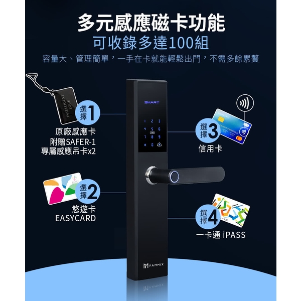 【FAMMIX 菲米斯】 五合一智慧指紋安全電子鎖(指紋/密碼/卡片/鑰匙)-圖4