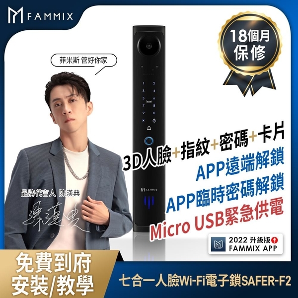商品名稱:【FAMMIX 菲米斯】3D人臉辨識七合一Wi-Fi智慧安全電子鎖SAFER-F2