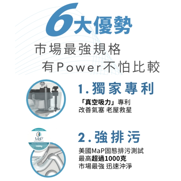 喉面噴射水流:徹底沖洗馬桶表面及將污物導向下方排污通道,超強排污力不卡髒。