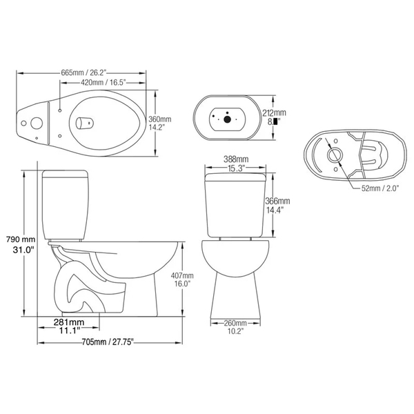 2吋全釉面直徑:2吋是經過精心計算的直徑,達成最佳排水流暢度,創造出最快速強大的沖力。全釉面可減少摩擦,有助於防止堵塞,並增加沖刷性能。