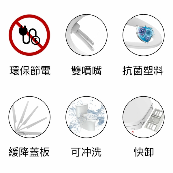 Hennessy&Hinchcliffe TS-BV( 標準V型)緩降抗菌免插電免治馬桶蓋 純白色-圖3
