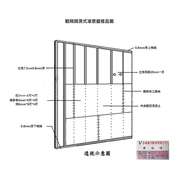 輕隔間濕式灌漿牆樣品圖產品介紹 - 永峰室內裝修有限公司