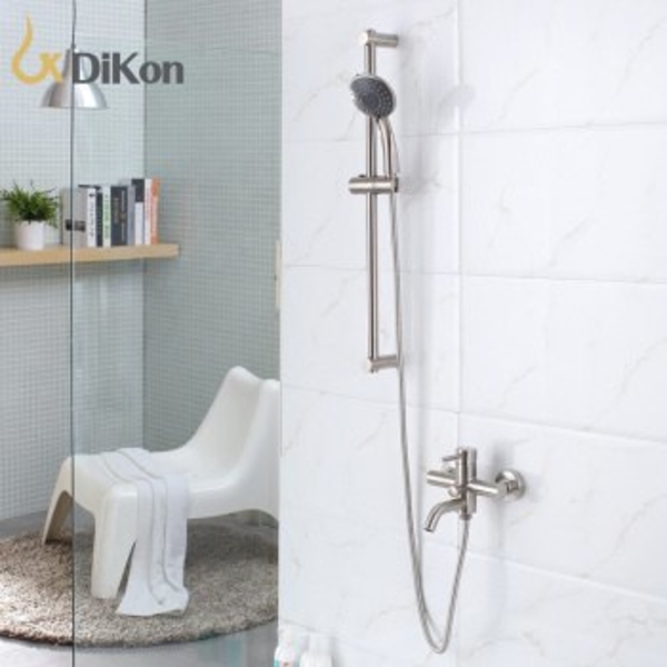 【帝鋼衛浴】 304不鏽鋼單把龍頭圓頭手持花灑(帶淋浴滑桿)TSH-0112 - 天翕有限公司
