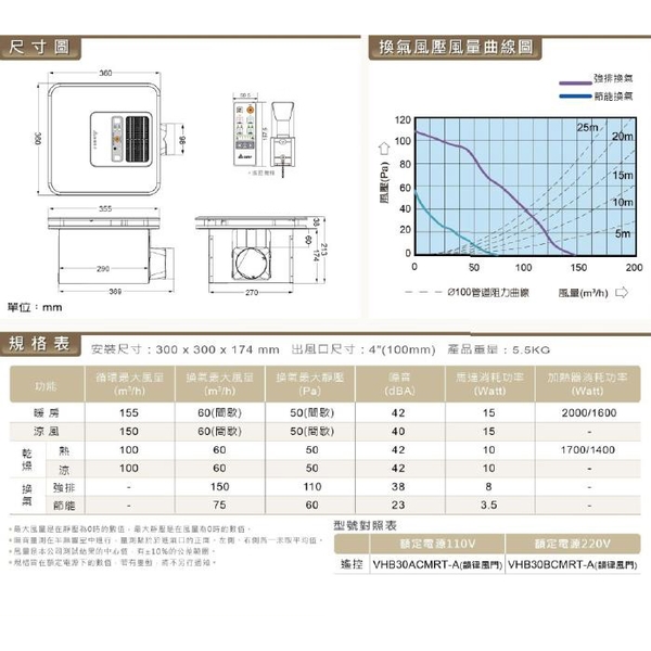 【台達電子】 多功能循環涼暖風機 VHB30ACMRT-A/VHB30BCMRT-A-圖4