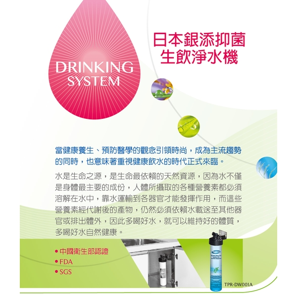 泰浦樂 日本銀添抑菌生飲淨水器 TPR-DW001A產品說明