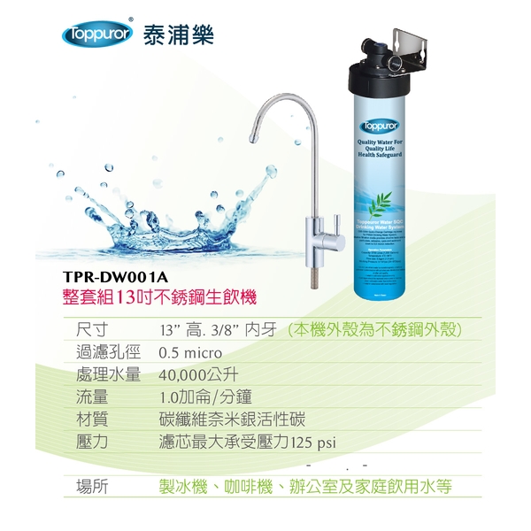 ◎品名/型號:泰浦樂 Toppuror TPR-DW001A 日本銀添抑菌生飲淨水機
