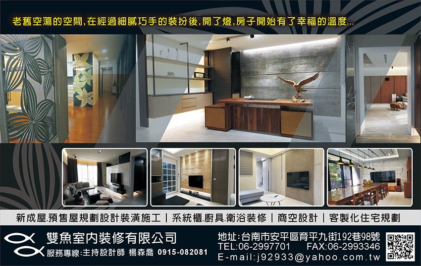 登記字號:40E2006132、裝潢設計、居家裝潢、店面設計、舊屋翻新、系統櫃、客製化住宅規劃、新成屋設計裝潢施工、台南空間設計、台南舊屋翻新、台南裝潢設計、預售屋規劃、室內設計、室內裝潢、空間設計、空間規劃、裝潢、裝修、系統廚具、住宅設計、景觀設計、新屋預售屋規劃、局部裝修、商業空間規劃施工、台南室內設計、舊屋翻修、台南室內裝潢、台南空間規劃、台南商業空間設計、台南裝潢、台南裝修、台南系統櫃、台南系統廚具、台南住宅設計、台南居家裝潢、台南店面設計、台南景觀設計、設計人員40EC014199
