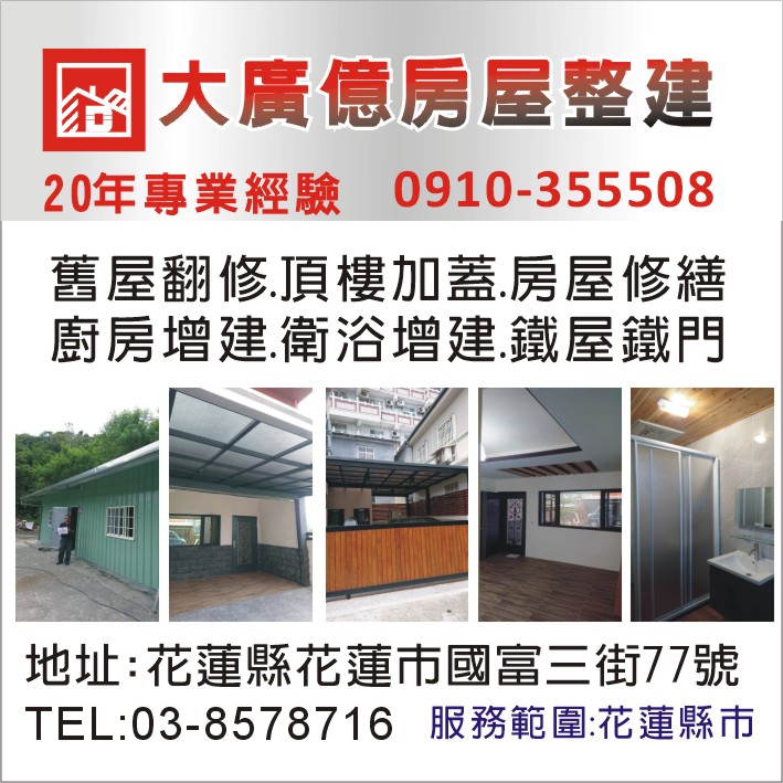 花蓮舊屋翻修、花蓮頂樓加蓋、花蓮房屋修繕、花蓮廚房增建、花蓮衛浴增建、花蓮鐵屋、花蓮鐵門、花蓮房屋整建、花蓮房屋翻新、花蓮房屋維修、花蓮房屋新建、花蓮宅修、花蓮鐵皮屋翻修、花蓮H鋼骨、花蓮鐵皮屋、花蓮舊屋重建、花蓮漏水處理、花蓮鋁門窗、花蓮油漆、花蓮裝潢、花蓮水電、花蓮水泥