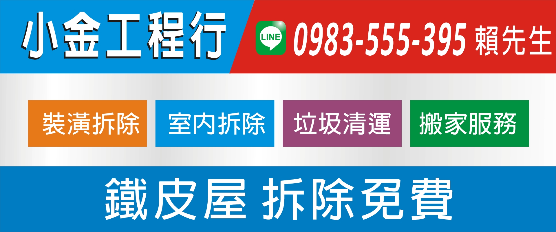 鐵皮屋拆除免費、裝潢拆除、室內拆除、垃圾清運、廢棄物清運、大小搬家服務、裝潢拆除估價免費,請洽0983-555395賴先生