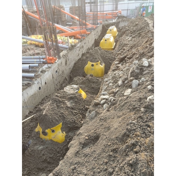 本公司對於一般家庭污水及有機性工業污水,利用微生物分解污水中複雜的有機化合物之生物接觸曝氣法,是最方便及最具經濟效益之處理方法,其操作管理容易、機件設備單純、控制技術簡易,可達到完全自動化控制,為其他污水處理法所無法比擬,惟其在分解過程中產生硝酸鹽及硫酸鹽,故本設施採用強度高且耐酸鹼之FRP為槽體設計材料。