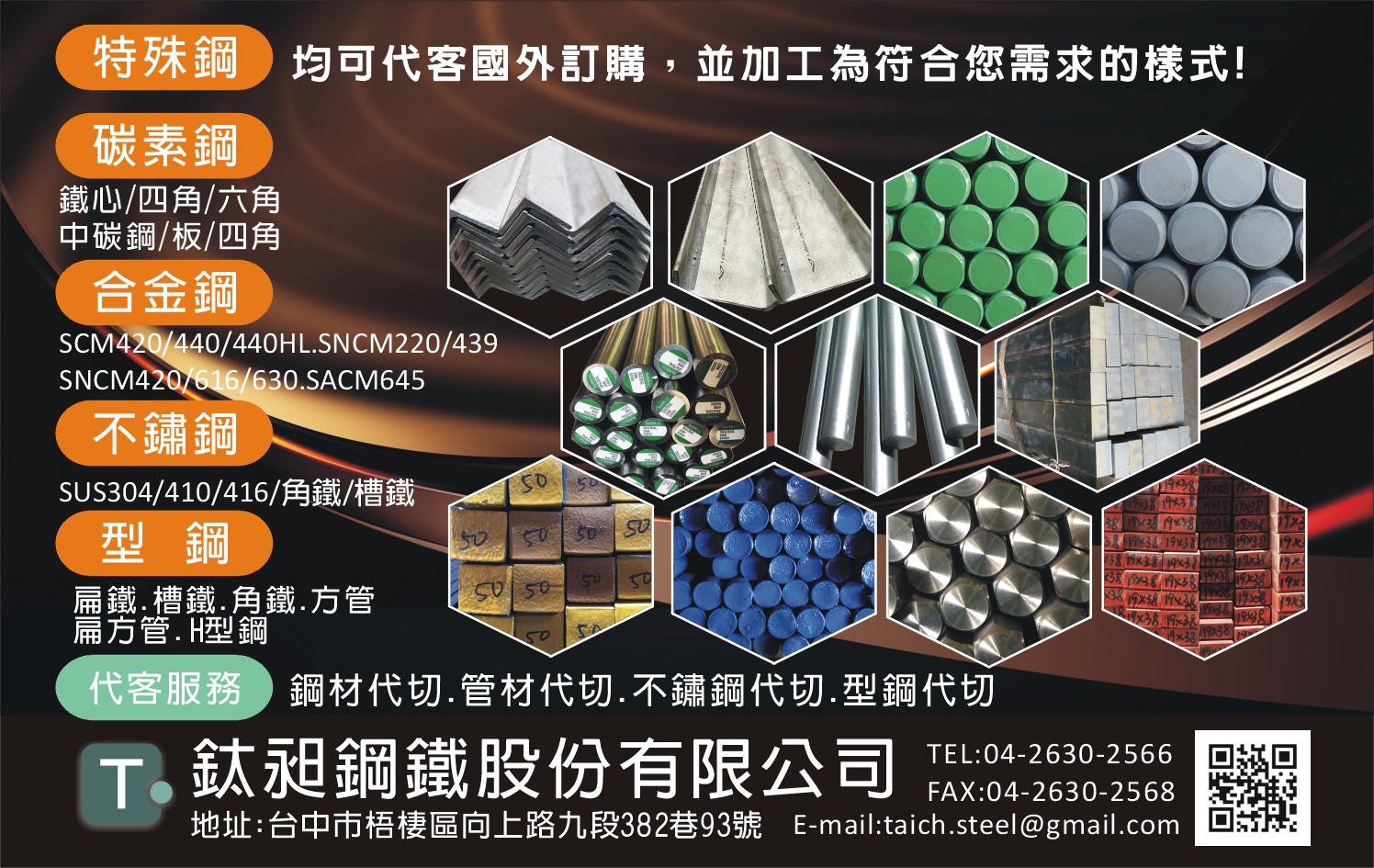服務項目:特殊鋼、不銹鋼、碳鋼、合金鋼、不鏽鋼 、鋼材買賣、H型鋼、鋼鐵買賣、鋼鐵代客裁切、工具鋼、軸承鋼、快削鋼、鐵管、型鋼、黑鐵心、光丸鐵、S45C、S45CBD、中碳板、中碳四角、黑四角鐵、六角鐵、304角鐵、304槽鐵、304鋼管、無縫鋼管、扁鐵、方管、扁方管、槽鐵、角鐵、鋼材代切、管材代切、不鏽鋼代切、型鋼代切、鐵材買賣、鋼材買賣、鋼材代客切割、SCM415、SCM420、SCM440、SNCM220、SNCM420、SNCM439、SNCM616、SNCM630、SACM645、SACM645(盤圓)、SKD11、SKD11F、SKD61、SKD61F、SK2、SK2F、SUJ2、SCM440HL、12L14、SUS304/L、SUS410、SUS416、SUS420J2