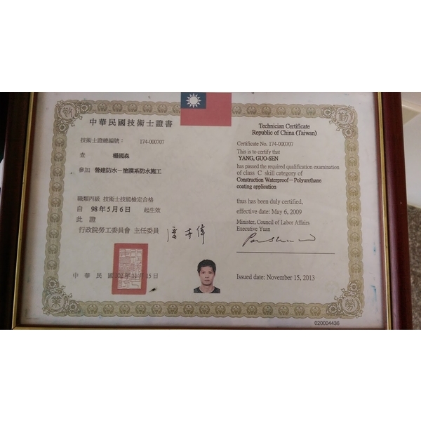 營建防水-塗膜系防水施工技術士證書產品介紹 - 淞河工程有限公司