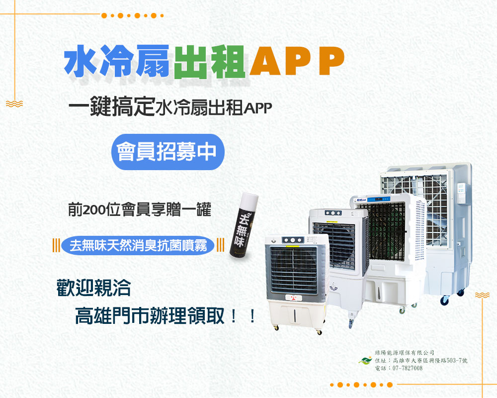 一鍵搞定水冷扇出租APP會員招幕中‧現加入享贈品!