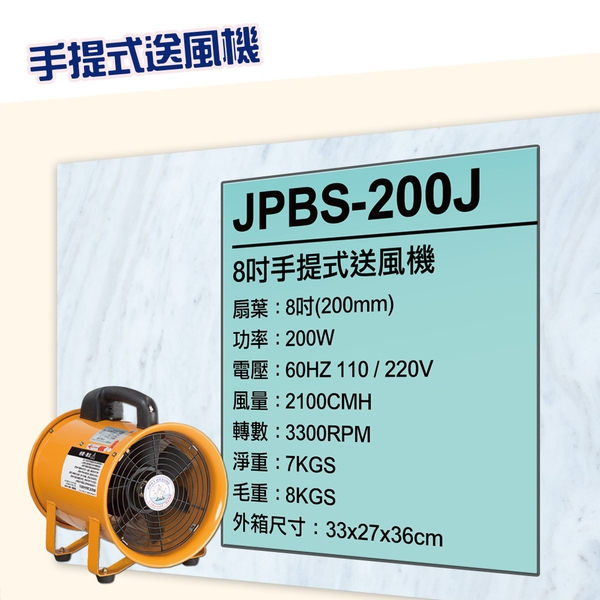 順帆手提式送風機8吋-JPBS-200J/可搭配尼龍伸縮軟管/原廠全新/高屏經銷商/高雄綠陽能源環保-圖3
