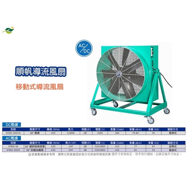 順帆AC/DC移動式/直接式-導流風扇SFBM-36DCN/原廠全新/高屏經銷商/高雄綠陽能源環保-圖1
