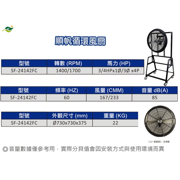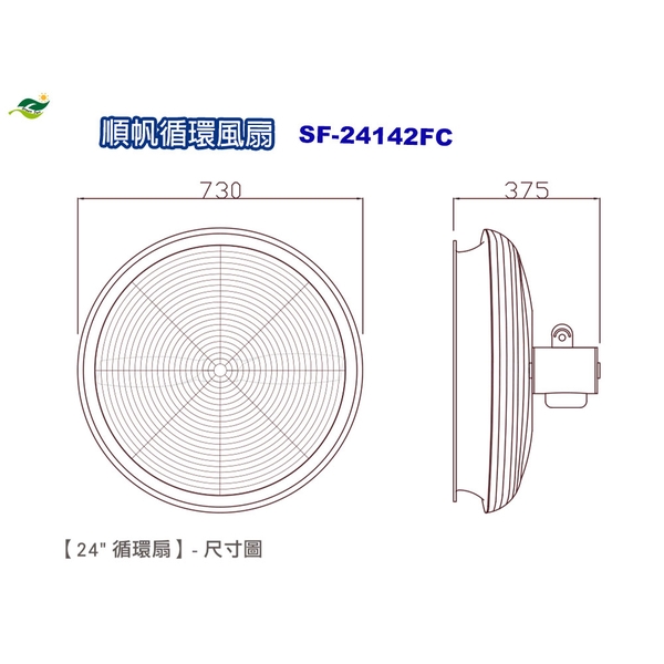 順帆24吋循環扇SF-24142FC/原廠全新/高雄大寮/綠陽/高屏經銷商產品說明